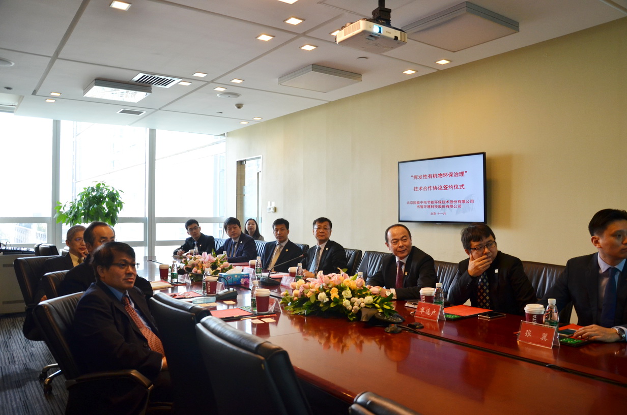 2017年11月7日上午,北京國能中電節(jié)能環(huán)保技術(shù)股份有限公司與杰智環(huán)境科技股份有限公司就“揮發(fā)性有機(jī)物環(huán)保治理”項(xiàng)目合作達(dá)成協(xié)議,并在國能中電公司舉行了隆重而熱烈的簽約儀式。