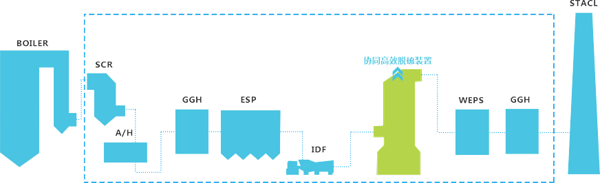 煙氣污染物協(xié)同脫除技術(shù)系統(tǒng)(SRS)是指在一設(shè)備內(nèi)同時(shí)脫除兩種及以上煙氣污染物,或者為下一流程設(shè)備脫除污染物創(chuàng)造有利條件,實(shí)現(xiàn)煙氣污染物在多個(gè)設(shè)備中高效聯(lián)合脫除,同時(shí)實(shí)現(xiàn)良好的節(jié)能效果的技術(shù)。國(guó)能中電系統(tǒng)地研究脫硝、除塵和脫硫之間的協(xié)同關(guān)系,充分考慮各類(lèi)污染物的綜合脫除效果,通過(guò)系統(tǒng)性的設(shè)計(jì),達(dá)到多種污染物的協(xié)同脫除的目的,實(shí)現(xiàn)最優(yōu)的排放指標(biāo)、最好節(jié)能效果和環(huán)保裝置的運(yùn)行經(jīng)濟(jì)性。